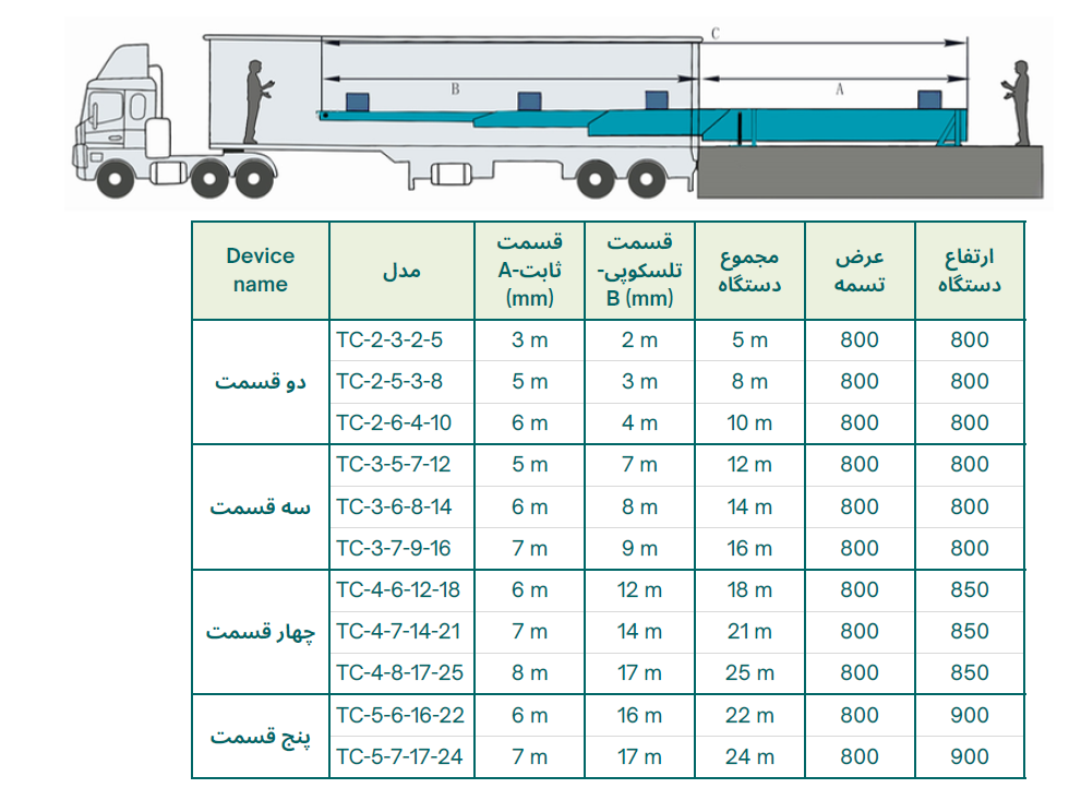 بخش اول، قسمت کشویی است که همانند یک تلسکوپ قابلیت باز و بسته شدن دارد، و بخش دوم، مکانیزم تنظیم ارتفاع دستگاه است که به اپراتور امکان می دهد تا ارتفاع نوار نقاله را متناسب با نیاز خود تنظیم کند.